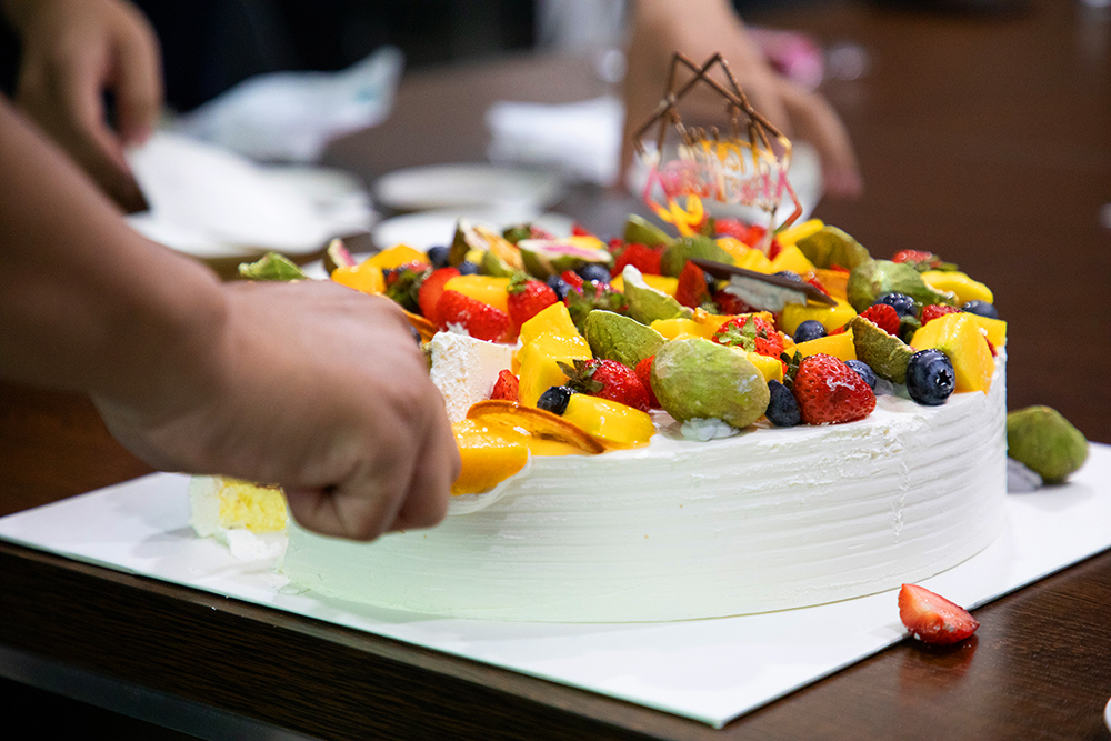 来到激感人心的时刻,唱生日歌、许愿并分享生日蛋糕,切蛋糕环节更是由安总喊出一个幸运数字,凭据数字抽取到现场一位寿星幸运儿来到台前为各人切蛋糕。